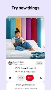 - ✨ Personalized Home Feed ("Smart Feed"): After you install the app and start interacting, your home feed becomes highly tailored. It surfaces ideas based on your past saves, searches, and even the pins you've looked at. It constantly introduces new but relevant content, making browsing addictive and fruitful.
