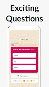 - 📊 Instant Results & Shareables: After completing a quiz, you get a cute breakdown of your score and compatibility. You can share these graphic results directly to social media or in your chats, which is a big part of the fun.