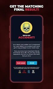 - 🎭 Quick & Humorous Scenarios: Unlike some similar apps that drag on, this one gets to the point. You answer a handful of quirky questions, and bam—you get your hilariously grim fate. It's perfect for a 30-second laugh.