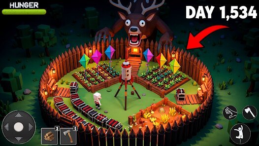 Playing this game is all about that satisfying grind of progression. You start with nothing, punching trees and picking up stones, and slowly work your way up to a fortified base with advanced gear. My favorite part is the building system. It's straightforward but surprisingly deep for a mobile title. There's a real sense of accomplishment in watching your simple lean-to evolve into a multi-room cabin with storage, workbenches, and defensive walls. The day-night cycle keeps you on your toes, as nights bring increased danger from wildlife, forcing you to plan your resource runs carefully. The best part is how it captures that 'just one more day' feeling; you always want to gather a bit more wood or finish that new weapon before logging off.