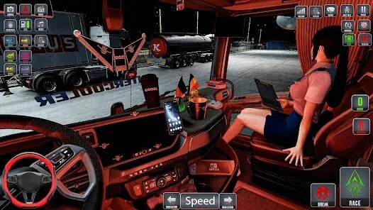 Jumping in, the controls are instantly familiar for mobile: a virtual steering wheel or tilt controls, along with buttons for gas, brake, and essential functions like the horn and lights. Performance was smooth on my device, with no major hitches. The fun was immediate; there's a simple satisfaction in nailing a tight turn or merging onto a busy freeway. One standout moment was my first multi-drop delivery as night fell. The dashboard lights glowed, the radio played a generic but fitting tune, and navigating the rain-slicked roads to a tight deadline created a genuine sense of purpose and immersion. The progression system, where you earn money to buy new, more powerful trucks, provides a clear and rewarding goal that kept me engaged session after session.