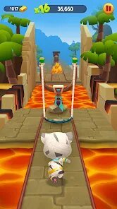Playing this game is super straightforward and addictive. You control Talking Tom or one of his friends, automatically running down a path filled with gold coins, obstacles, and power-ups. The best part is the sheer polish and charm. The controls are simple—just tap to jump and swipe to change lanes or slide—but the levels are beautifully designed with vibrant colors and fun themes, from city streets to pirate coves. My favorite part is the collection aspect. You're not just running; you're collecting gold to rebuild and customize your own city block, unlocking new buildings and decorations. It gives the endless runner genre a real sense of progression and purpose that keeps me coming back.