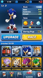 - Character & Ability System 🦔 - You collect and upgrade different Sonic characters, each with unique skills that can turn the tide of a race, adding a layer of strategy not always found in basic endless runners.