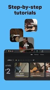 - 🎸 Structured, Gameified Learning Path: The app doesn't just throw songs at you. It has a full curriculum that starts with the absolute basics and gradually introduces chords, strumming patterns, and techniques. You earn stars and unlock new levels, which is a huge motivator compared to the more linear lesson structures in apps like Fender Play.
