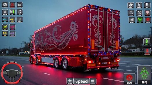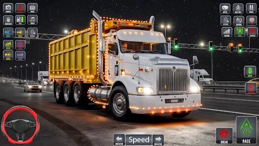 Jumping in, the controls are instantly familiar for mobile: a virtual steering wheel or tilt controls, along with buttons for gas, brake, and essential functions like the horn and lights. Performance was smooth on my device, with no major hitches. The fun was immediate; there's a simple satisfaction in nailing a tight turn or merging onto a busy freeway. One standout moment was my first multi-drop delivery as night fell. The dashboard lights glowed, the radio played a generic but fitting tune, and navigating the rain-slicked roads to a tight deadline created a genuine sense of purpose and immersion. The progression system, where you earn money to buy new, more powerful trucks, provides a clear and rewarding goal that kept me engaged session after session.